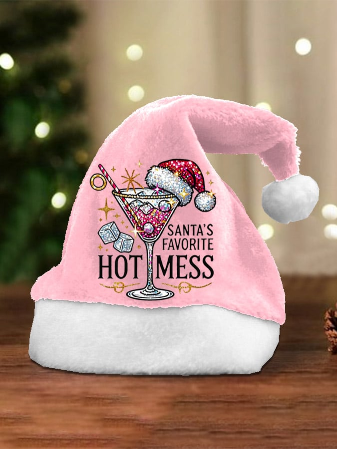 Unisex Christmas Santa's Favorite Hot Mess Print Plush Hat