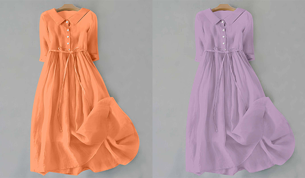 - Available in a range of solid colors, including light blue, orange, and white, this dress is designed to meet all your style needs.