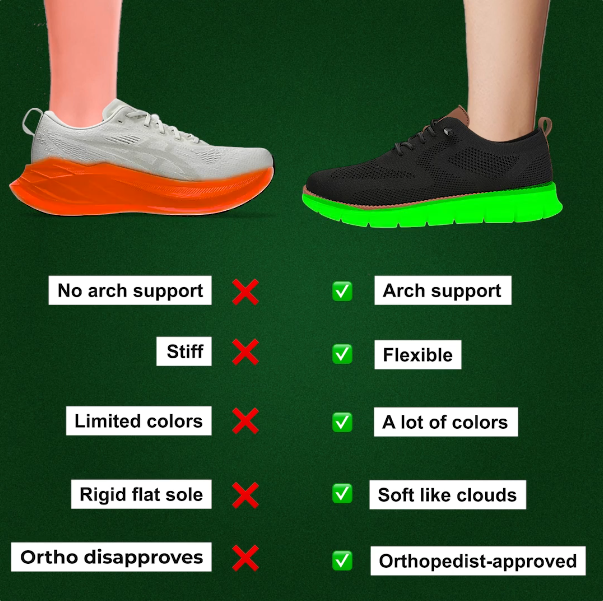 ✓ Supportive Cushioning -Unlike other shoes, Peak Footwear offers targeted cushioning that supports your foot's natural arch, alleviating the pain associated with plantar fasciitis and ensuring all-day comfort.